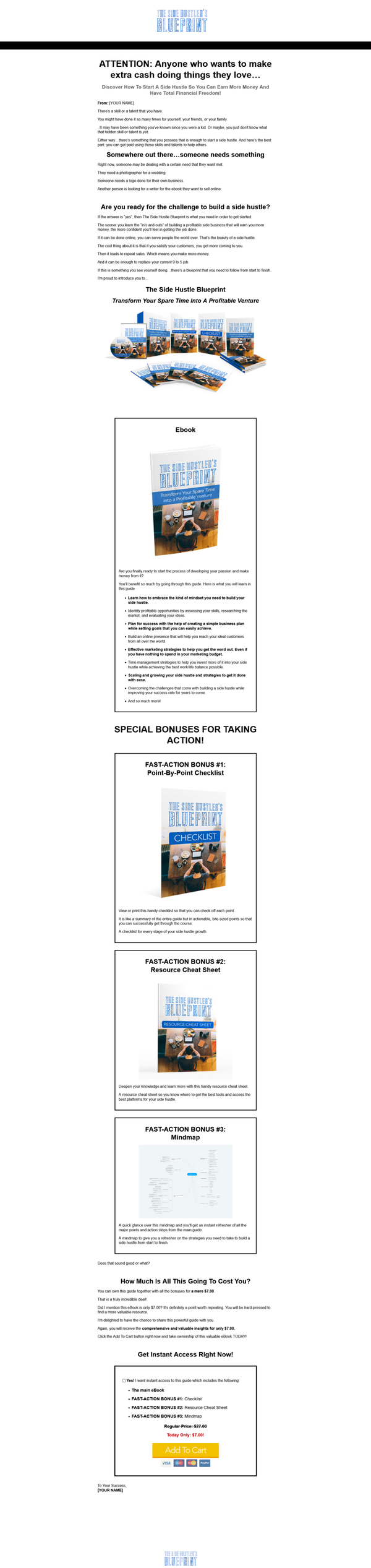 eBook The Side Hustlers Blueprint - License: MRR + Sales Page