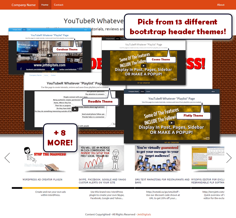 One of the standout features is the ability to use one of the provided Bootstrap CSS themes or to add your own personal touch. You can even customize the main video background using a provided one or your own choice.