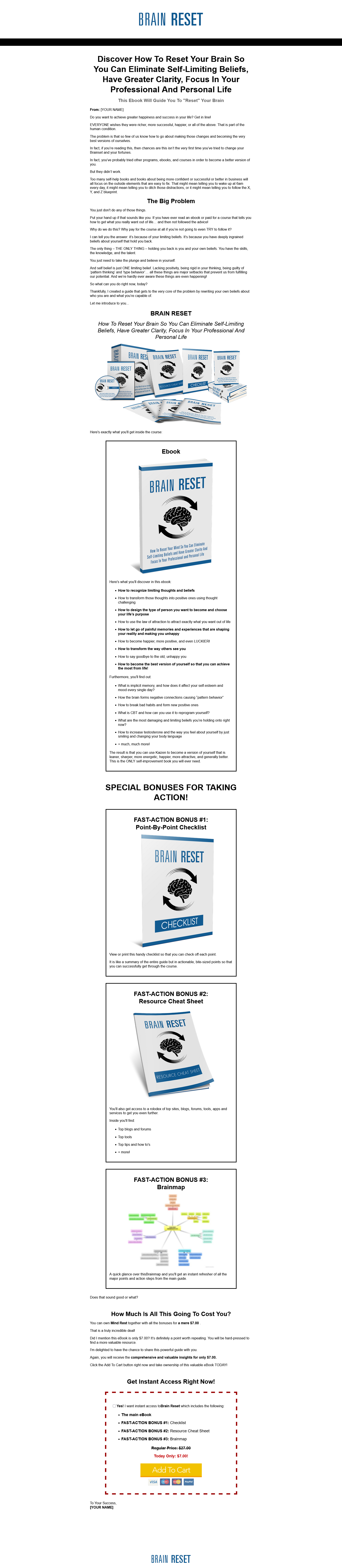 Brain Reset is your essential guide to unraveling the mental blocks that stand in the way of achieving your life's aspirations. This comprehensive ebook empowers you with practical insights and strategies, meticulously crafted to uncover and dismantle limiting beliefs, and recalibrate your mindset towards success.