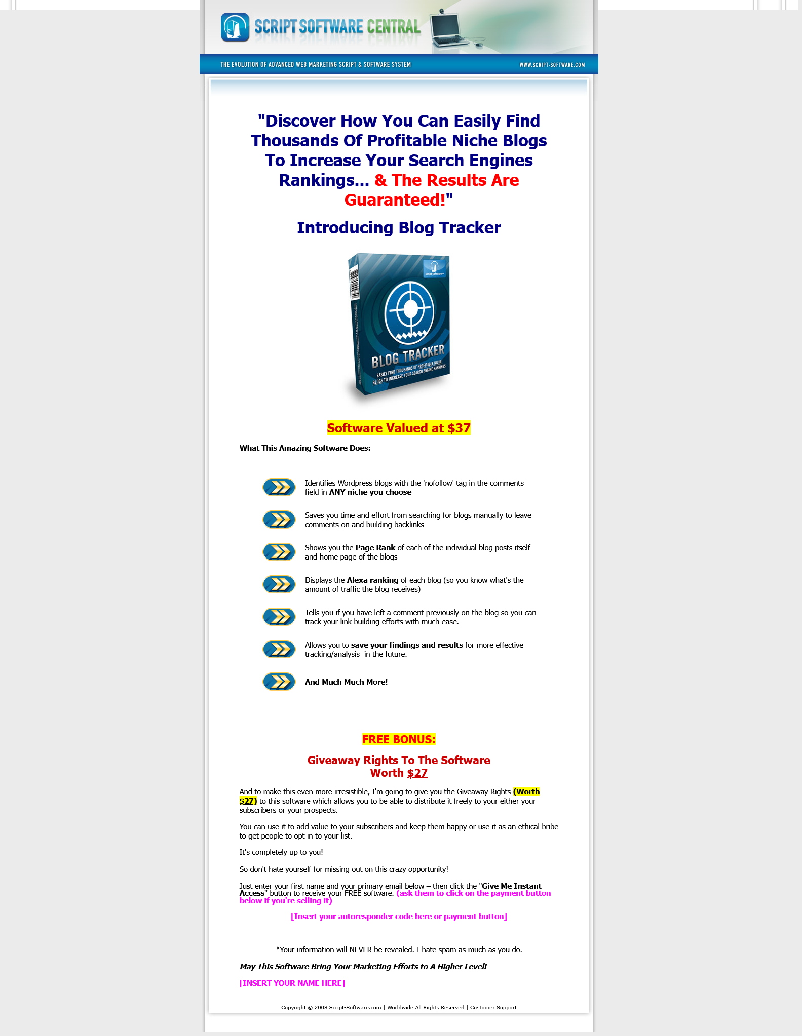 Blog Tracker with Salespage - License: SRR - Free Download