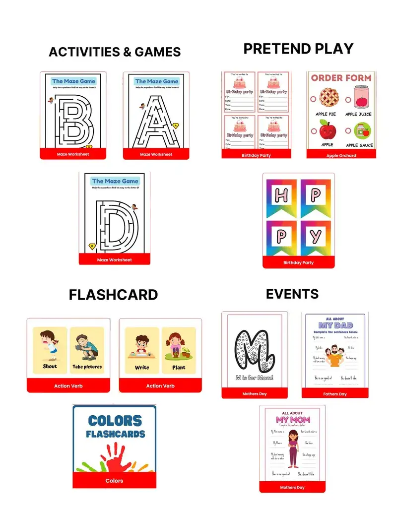 This extensive bundle covers essential topics such as the alphabet, numbers, shapes, and colors, providing a solid foundation for young learners. Each activity is carefully crafted to engage and inspire curious minds, fostering a love for learning from an early age.