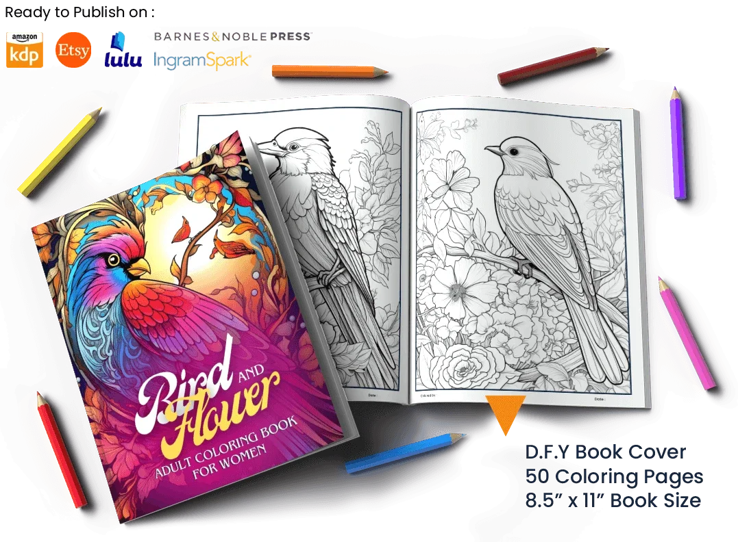 Bird & Flower 50 Pages - License: PLR - Coloring Pages Printable PDF - KDP Ready
