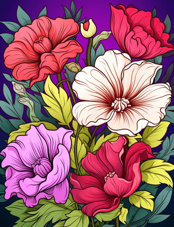 Relaxing Flowers 50 Pages - License: PLR - Coloring Pages Printable PDF - KDP Ready