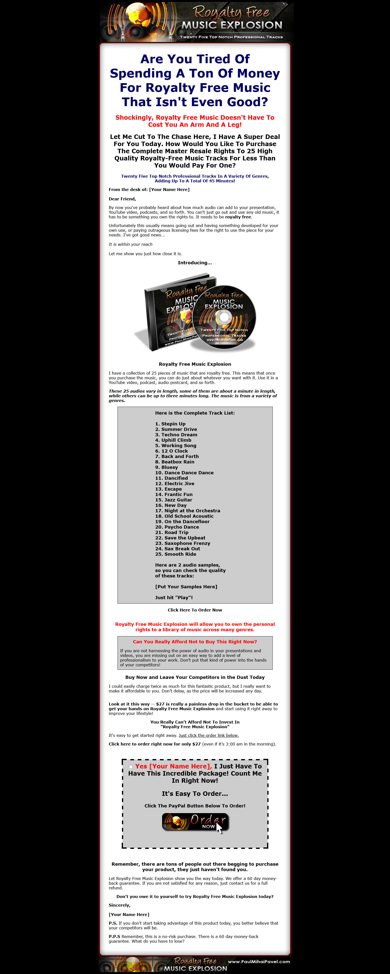 Royalty Free Music Explosion - License: MRR + Sales Page