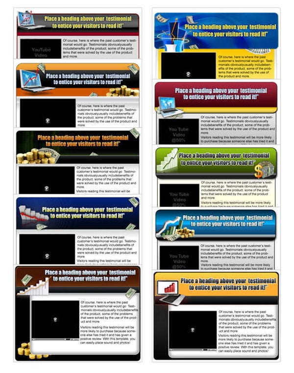 - 10 basic testimonial boxes to showcase customer satisfaction